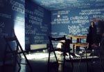 The concept of the construction of the planes was proportioned so ideas which were more personal were placed on layers further back in the space while the association link became more arbitrary and subjective. On the highest level I used general words like family, human, belief, love, etc. and I grouped words of more personal and intimate intonation on lower levels, and I also increased their numbers from plane to plane. I also tried to keep with the system of having words of the same value and theme on one level so they would characterize a circle of thought even if they are independent and separated.
